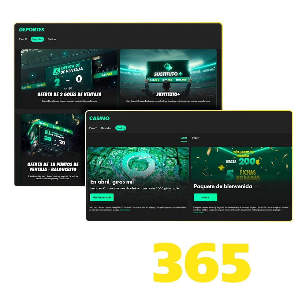 Aunque no disponemos de un bono de bienvenida, Bet365 compensa con ventajas competitivas que están activas desde el primer inicio de sesión. Nuestra propuesta de valor se centra en herramientas como pago anticipado, aumento de apuesta, garantías, devoluciones, transmisión en streaming de eventos importantes y cuotas mejoradas que permiten la experiencia premium sin necesidad de promociones iniciales.